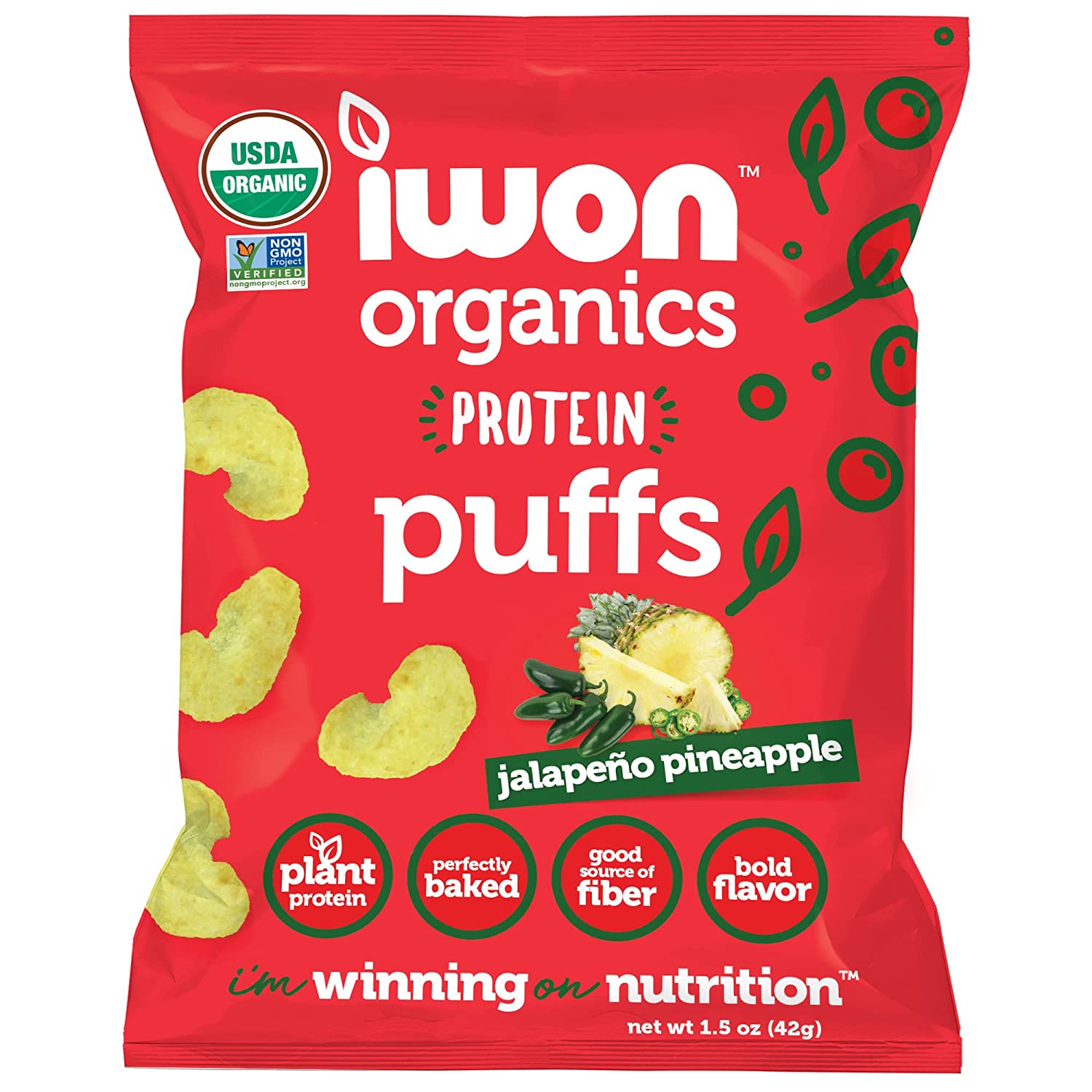 IWON Organics Jalapeno Pineapple Flavor Protein Puff, High Protein and Organic Healthy Snacks, 8 Bags