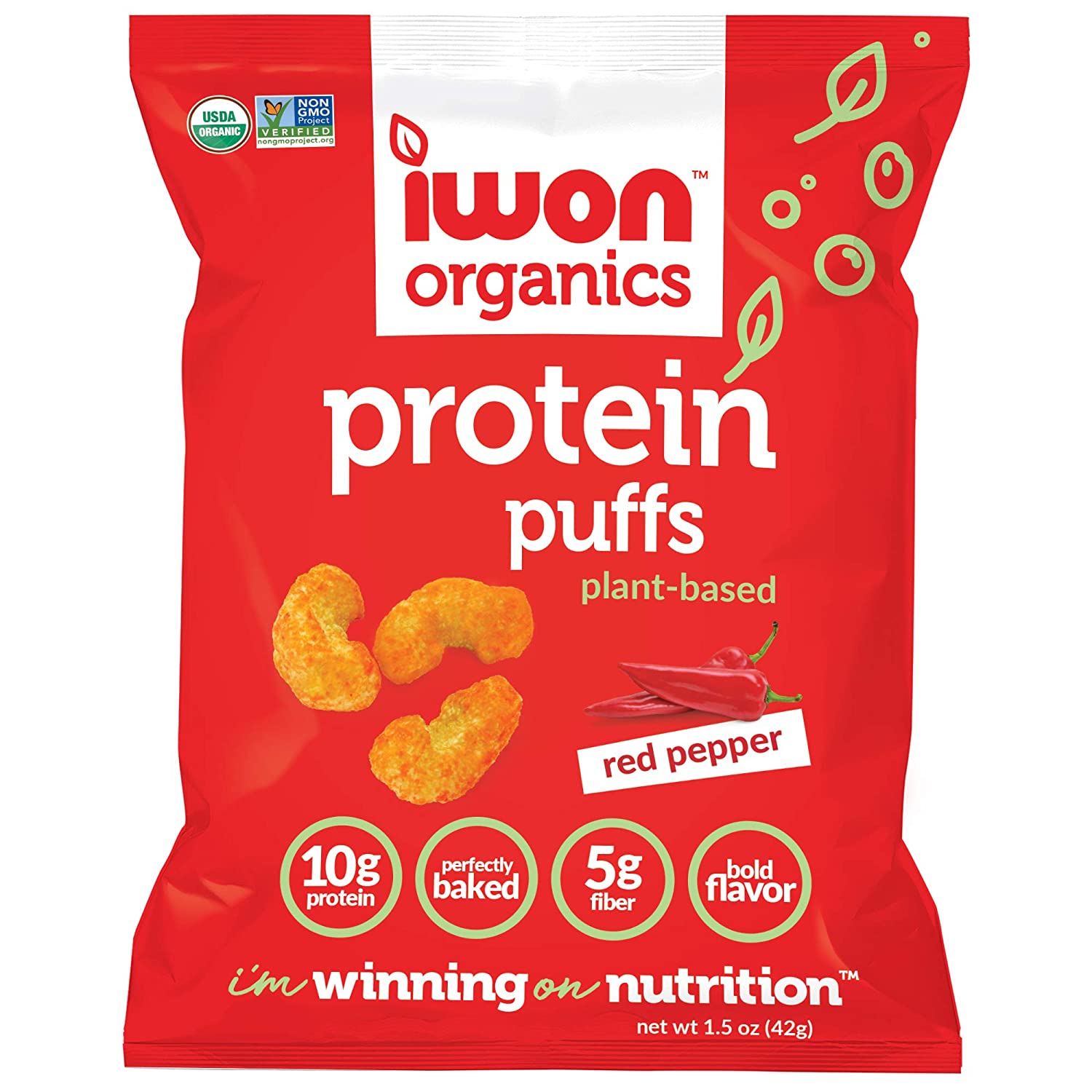 IWON Organics Red Pepper Flavor Protein Puff, High Protein and Organic Healthy Snacks, 8 Bags