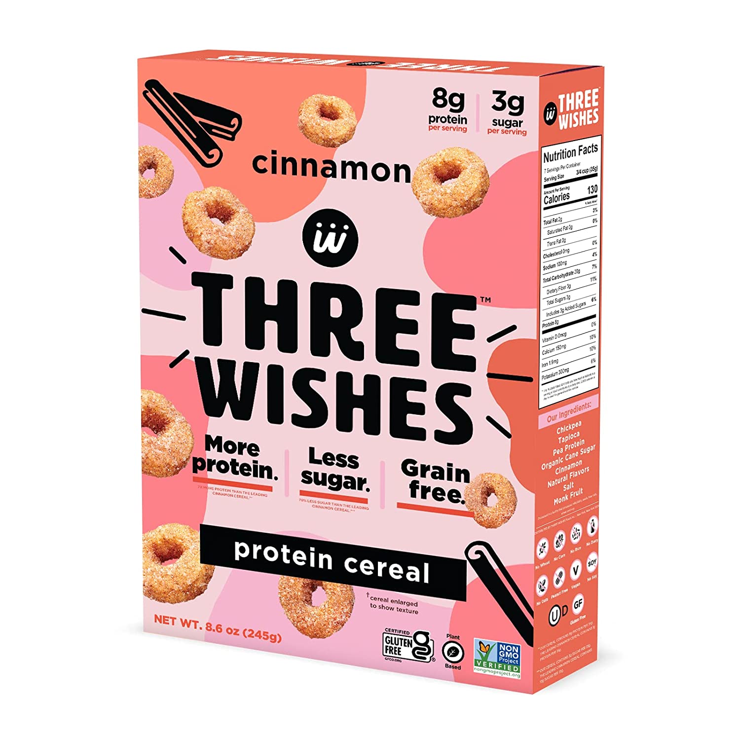 Protein and Gluten-Free Breakfast Cereal by Three Wishes – Cinnamon, 1 Pack – High Protein and Low Sugar Snack – Vegan, Kosher, Grain-Free and Dairy-Free – Non-GMO